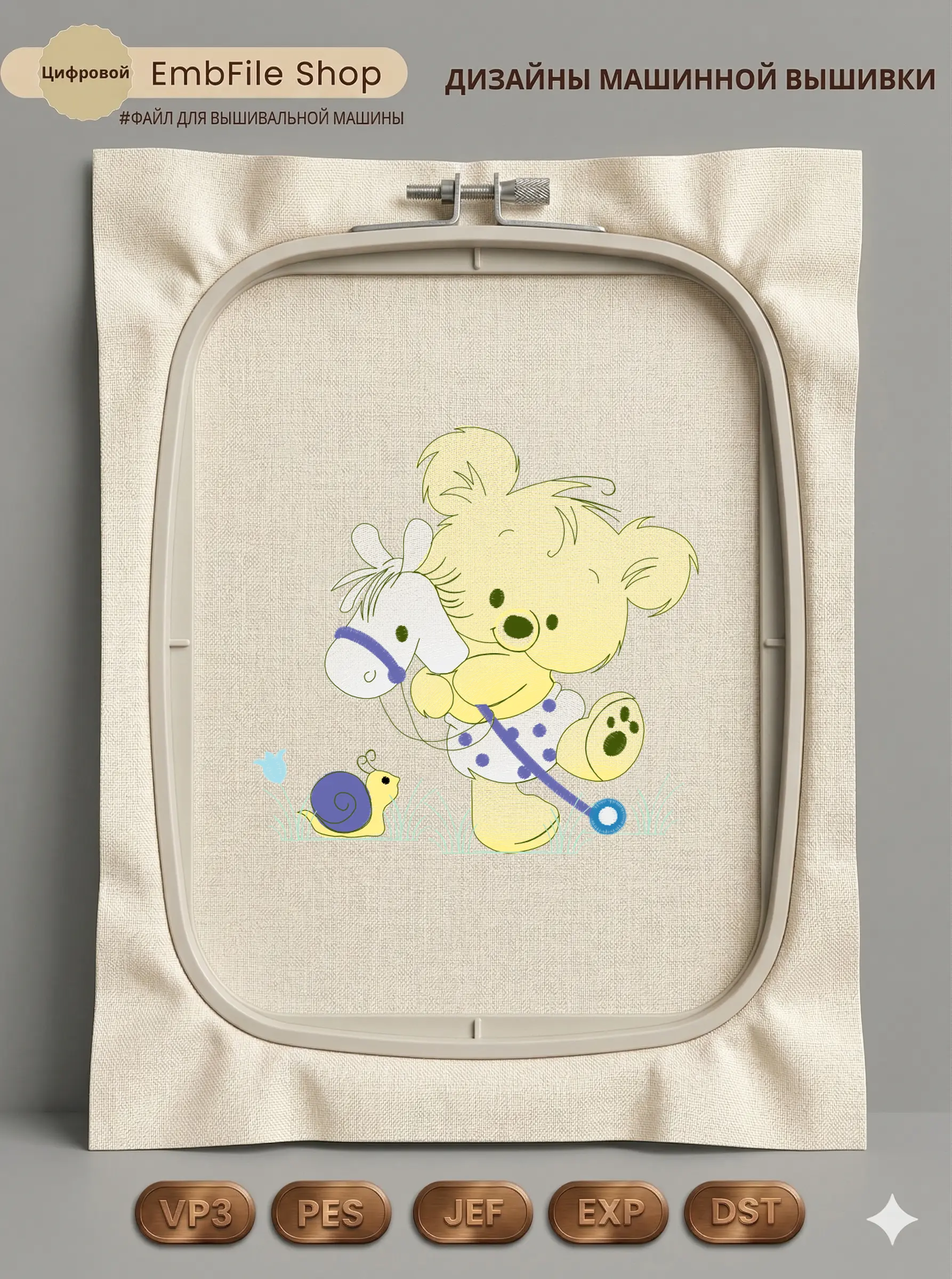 Дизайн протестирован на различных типах тканей, что гарантирует чистое и стабильное нанесение стежков.