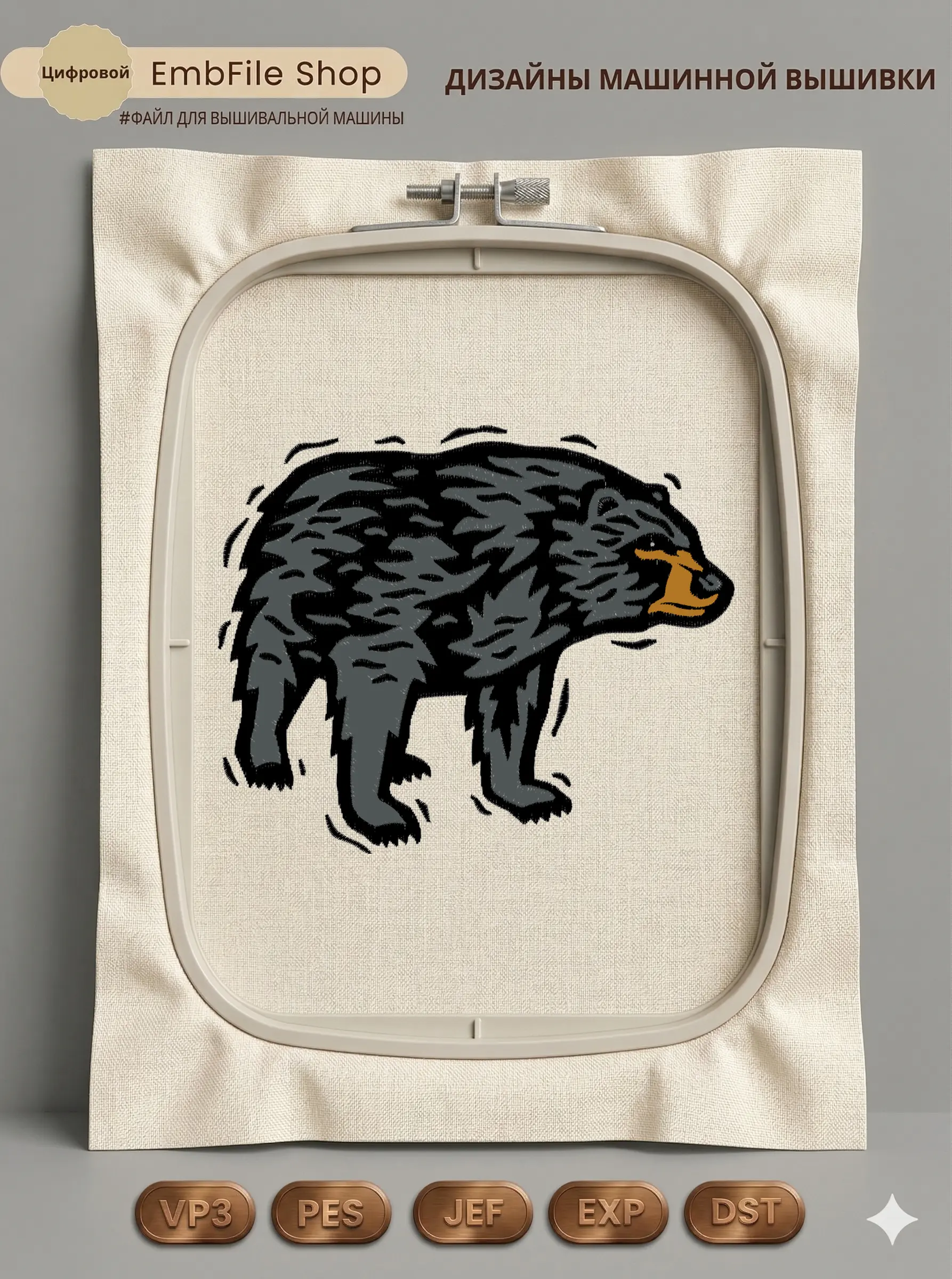 Это цифровой файл для вышивальной машины, а не физический товар (нашивка). Для работы с файлом вам необходимо иметь вышивальную машину и способ передачи файла на устройство (USB-флешка и т.д.).