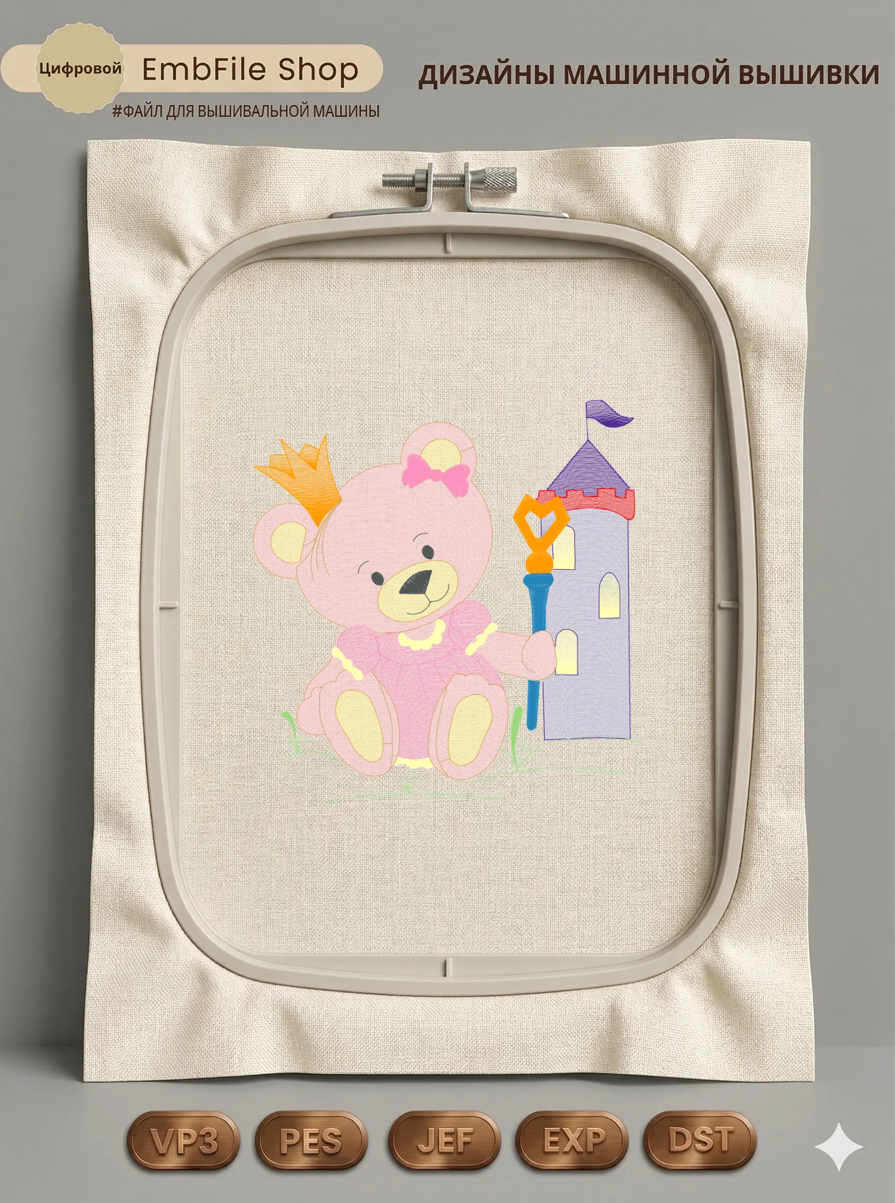 Дизайн протестирован на различных типах тканей, что гарантирует чистое и стабильное нанесение стежков.