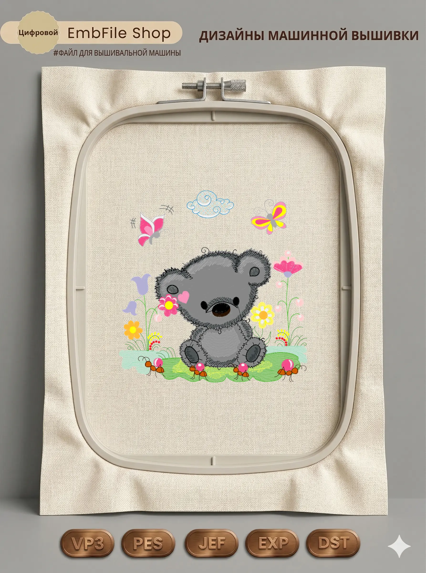Дизайн протестирован на различных типах тканей, что гарантирует чистое и стабильное нанесение стежков.