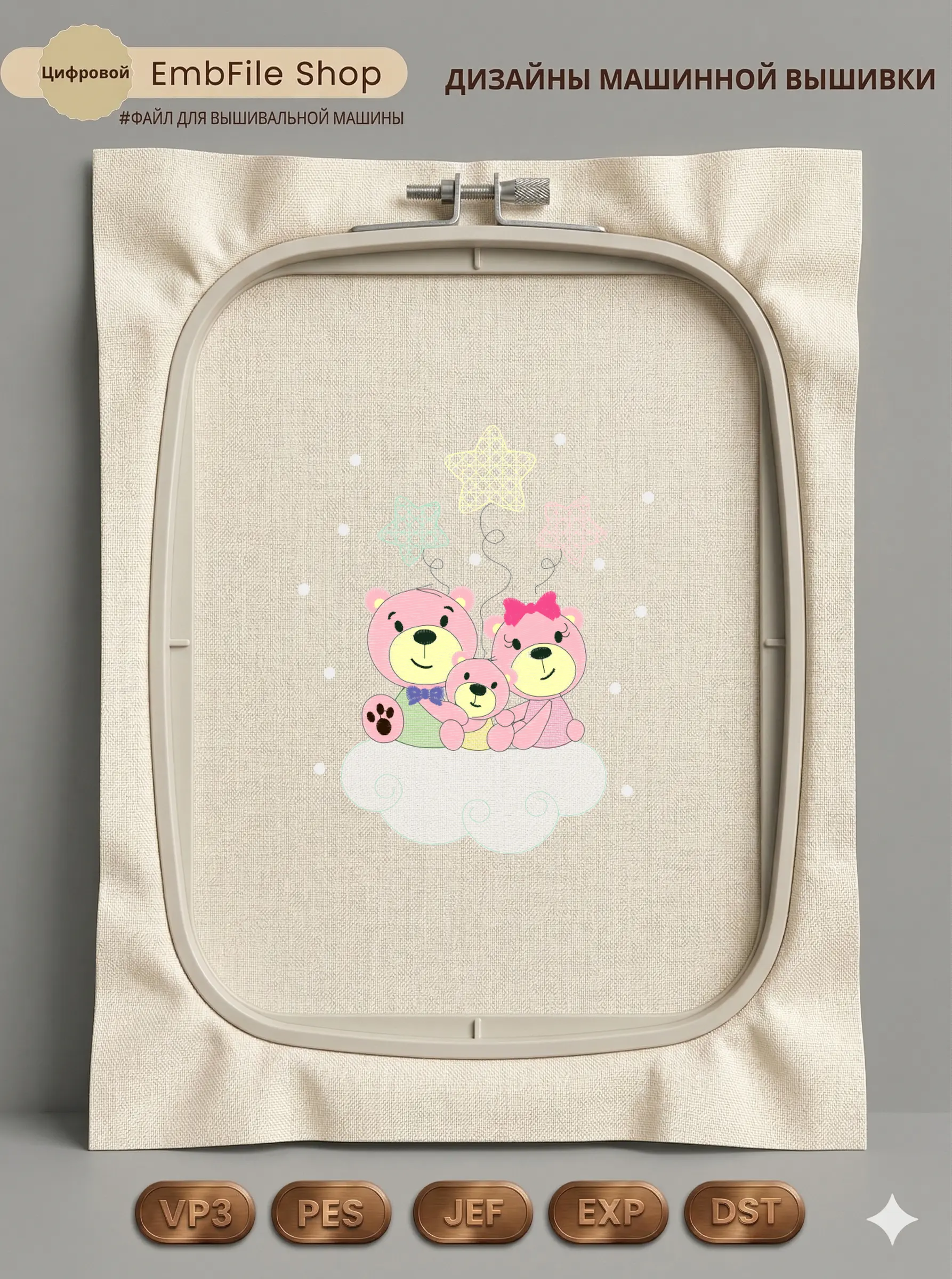 Это цифровой файл для вышивальной машины, а не физический товар (нашивка). Для работы с файлом вам необходимо иметь вышивальную машину и способ передачи файла на устройство (USB-флешка и т.д.).