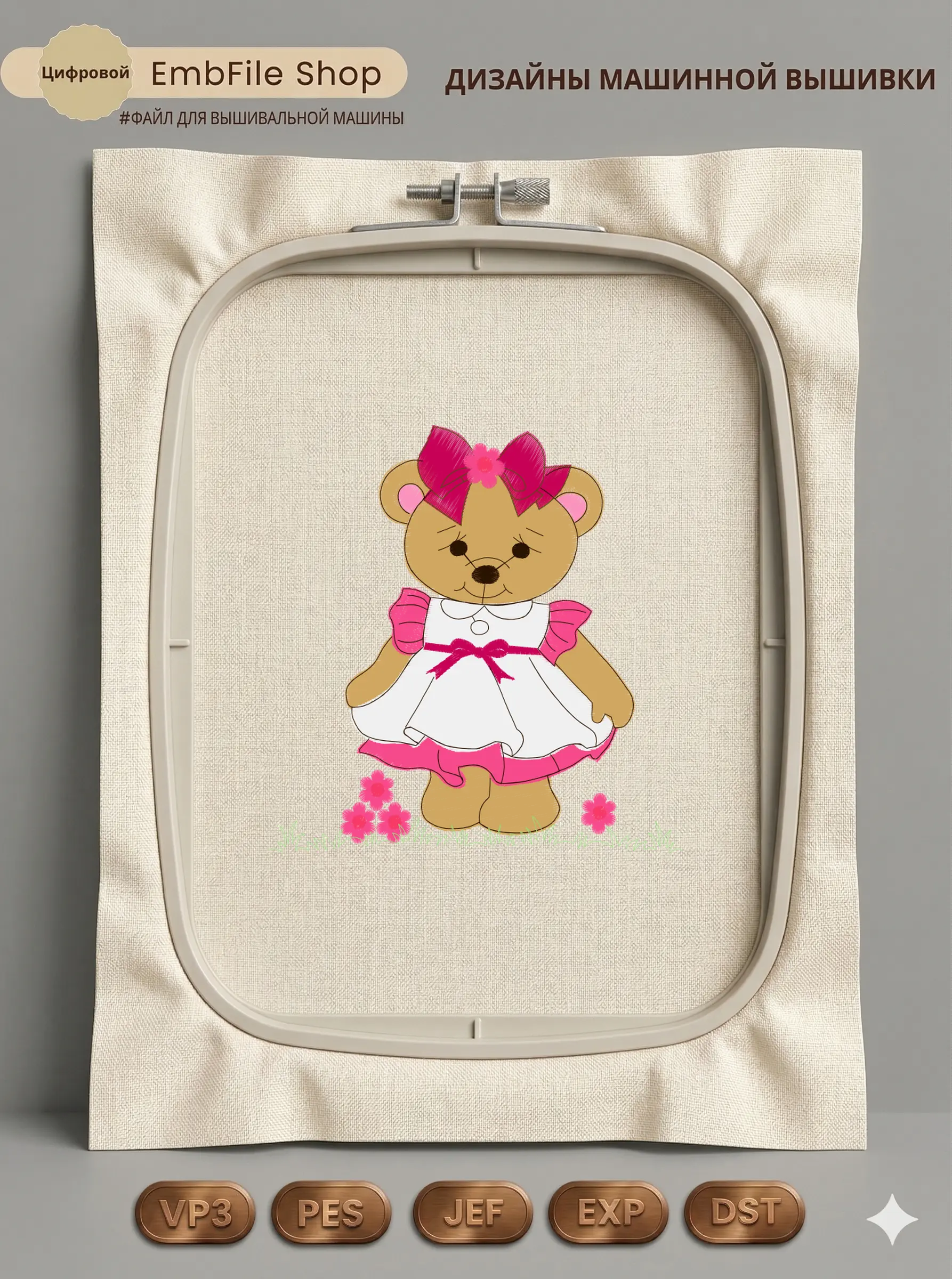 Дизайн протестирован на различных типах тканей, что гарантирует чистое и стабильное нанесение стежков.