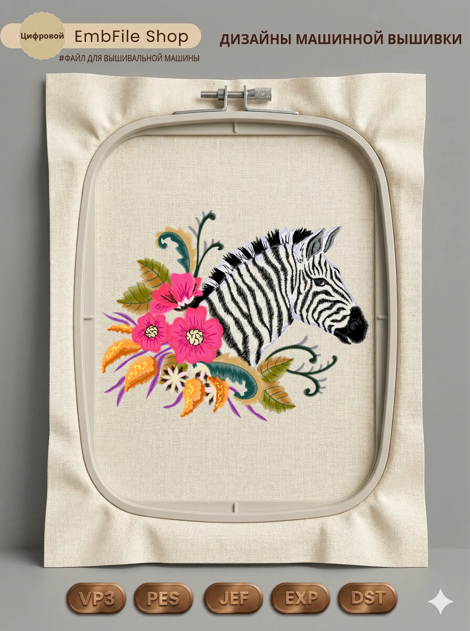 Это цифровой файл для вышивальной машины, а не физический товар (нашивка). Для работы с файлом вам необходимо иметь вышивальную машину и способ передачи файла на устройство (USB-флешка и т.д.).