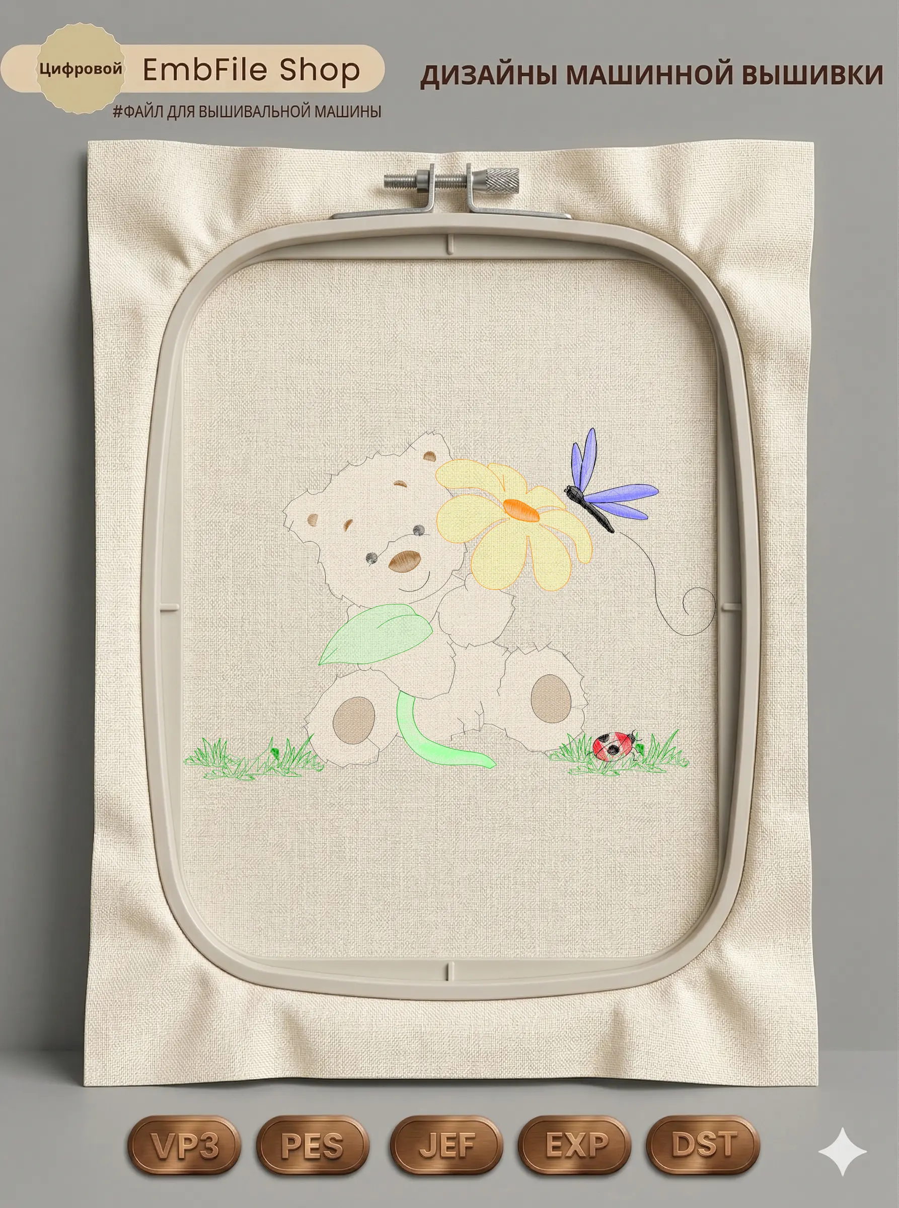 Это цифровой файл для вышивальной машины, а не физический товар (нашивка). Для работы с файлом вам необходимо иметь вышивальную машину и способ передачи файла на устройство (USB-флешка и т.д.).