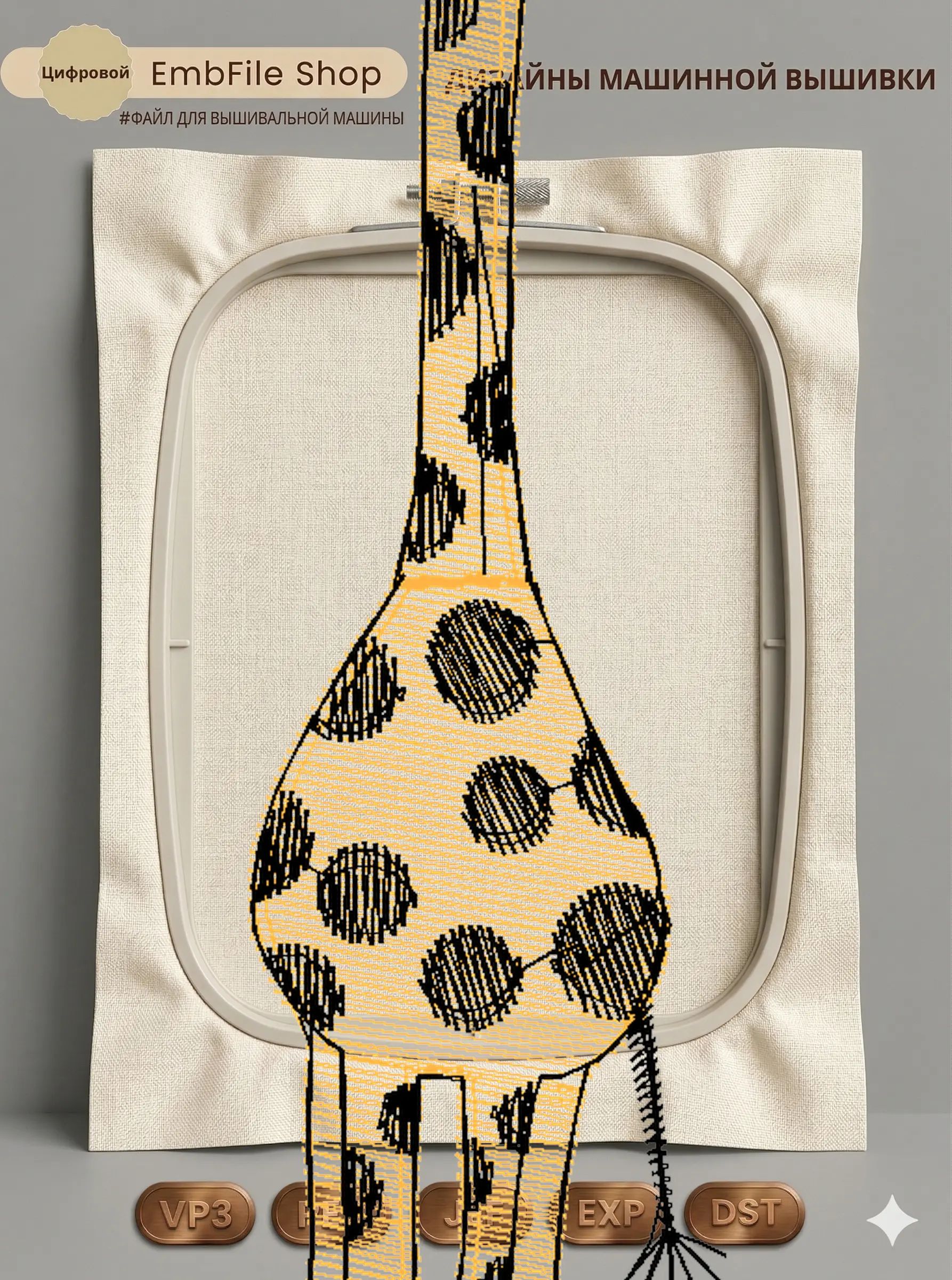 Это цифровой файл для вышивальной машины, а не физический товар (нашивка). Для работы с файлом вам необходимо иметь вышивальную машину и способ передачи файла на устройство (USB-флешка и т.д.).