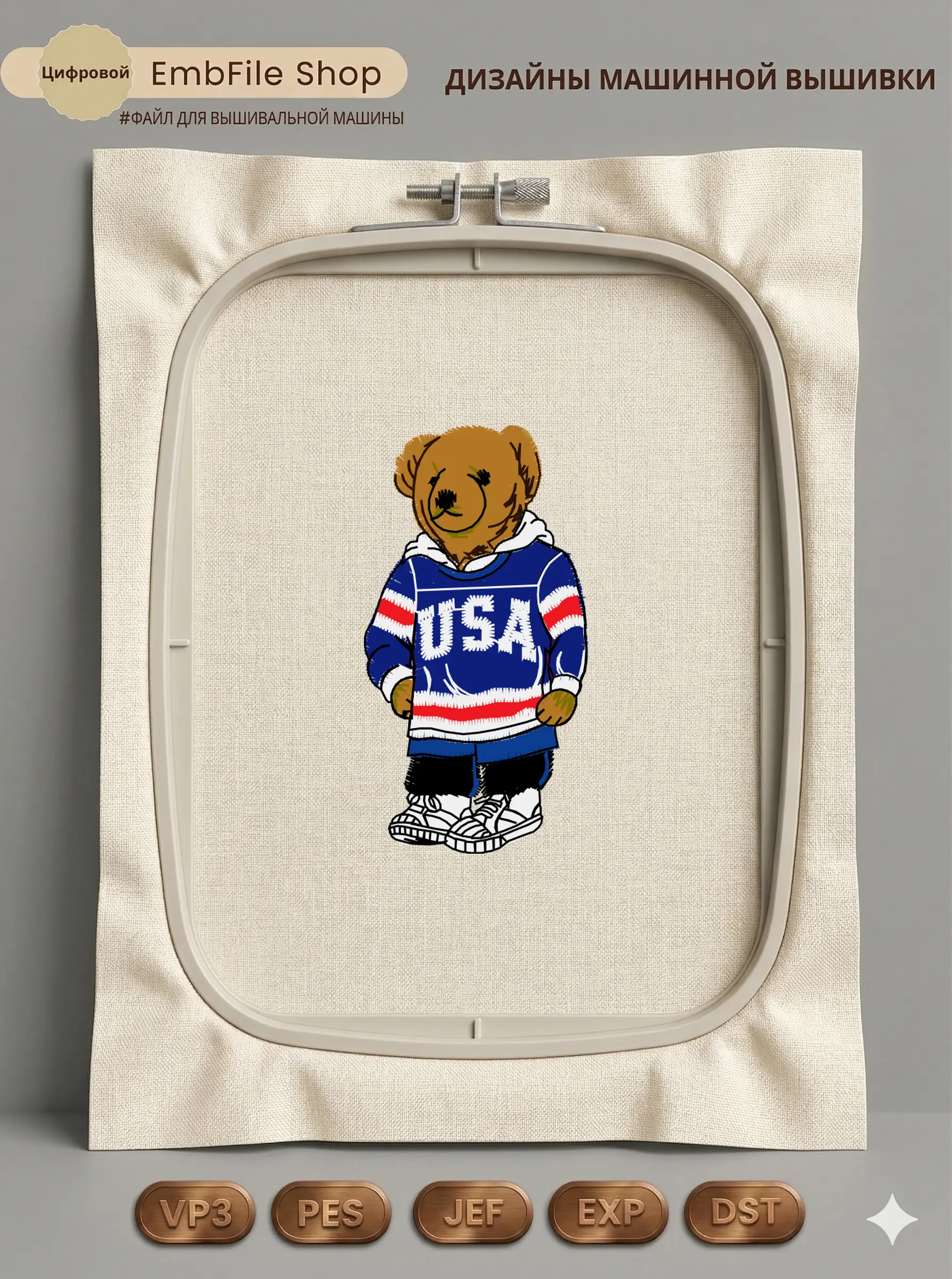 Это цифровой файл для вышивальной машины, а не физический товар (нашивка). Для работы с файлом вам необходимо иметь вышивальную машину и способ передачи файла на устройство (USB-флешка и т.д.).