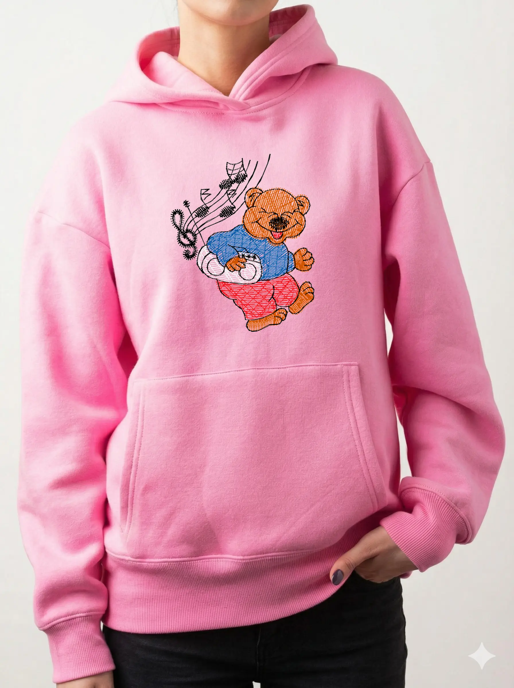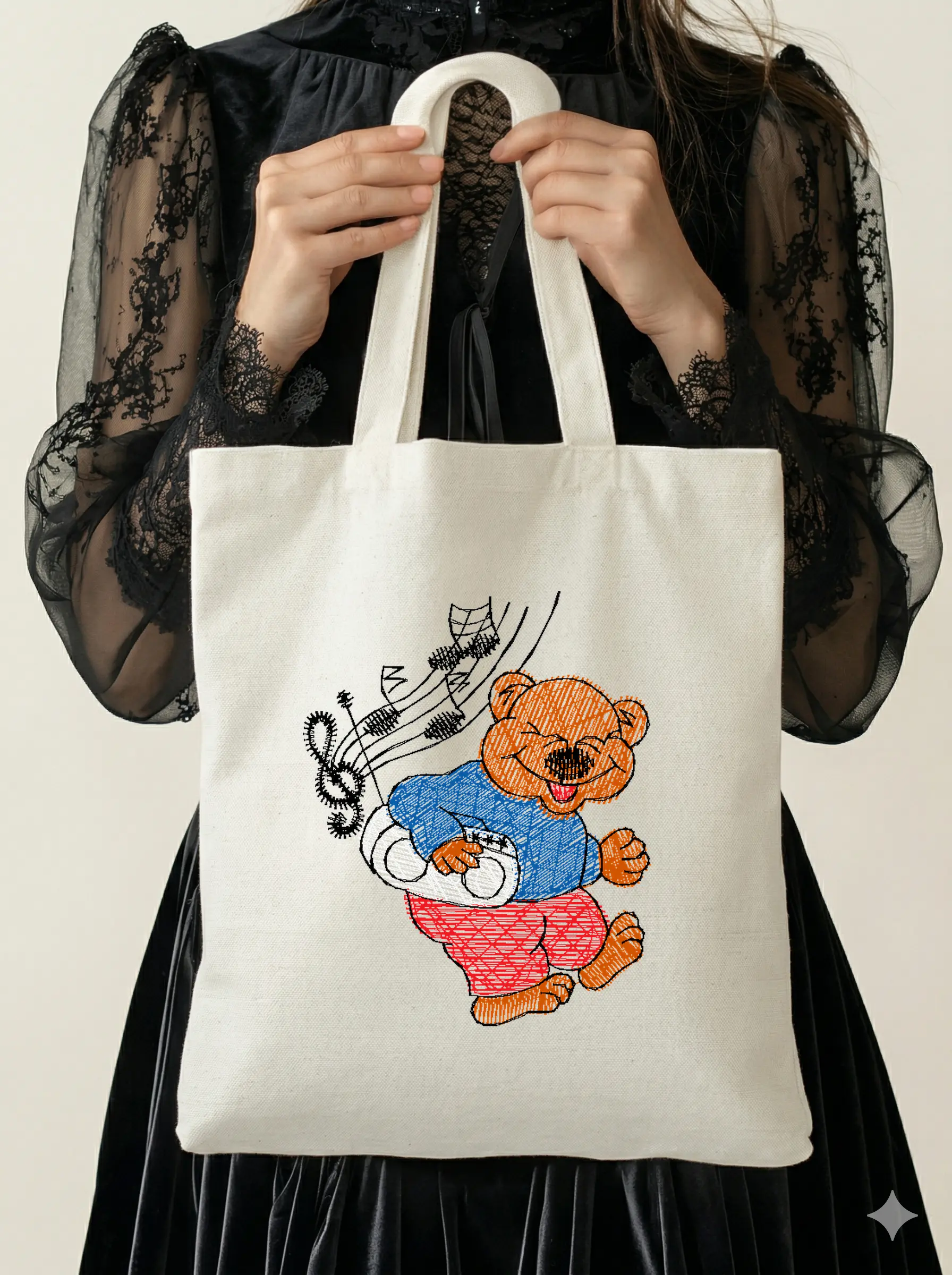 Дизайн протестирован на различных типах тканей, что гарантирует чистое и стабильное нанесение стежков.