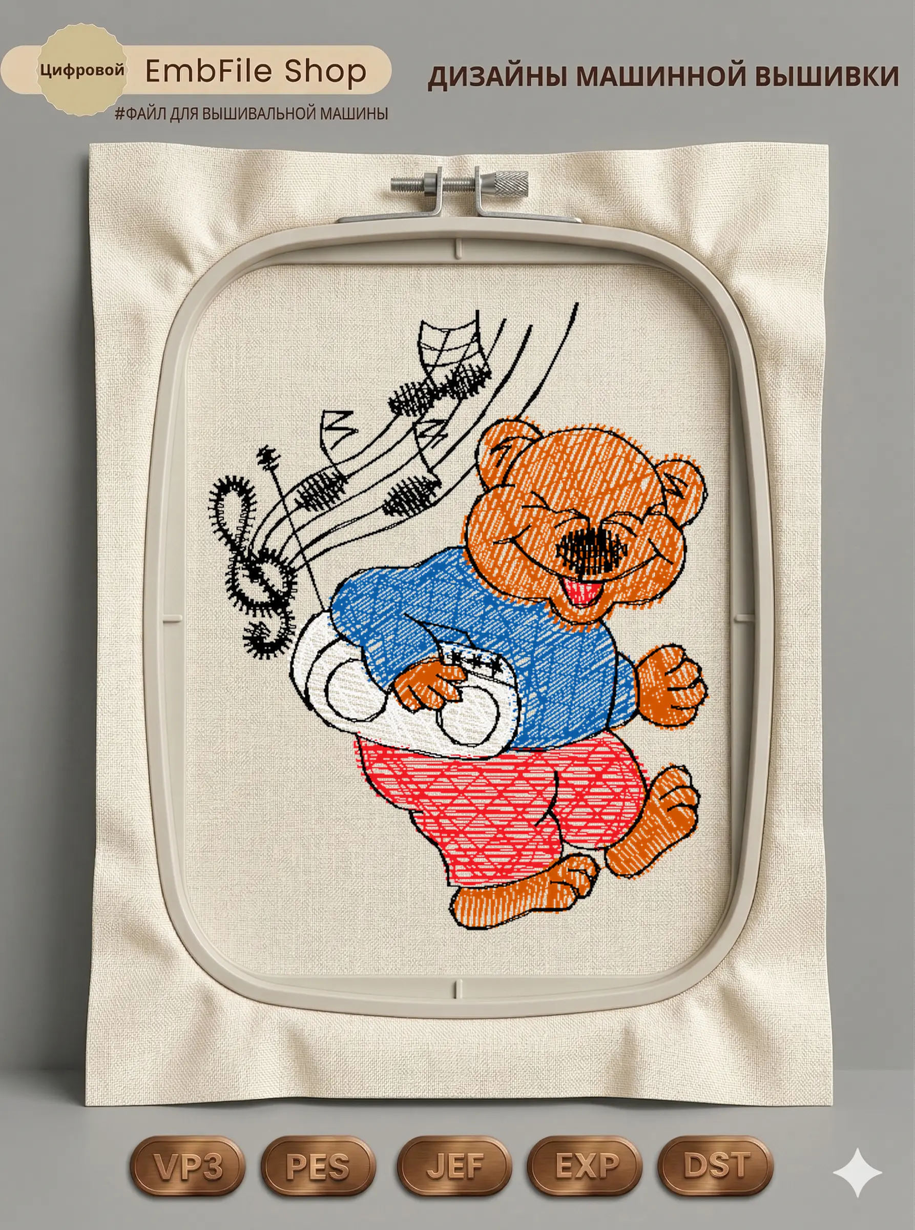 Это цифровой файл для вышивальной машины, а не физический товар (нашивка). Для работы с файлом вам необходимо иметь вышивальную машину и способ передачи файла на устройство (USB-флешка и т.д.).
