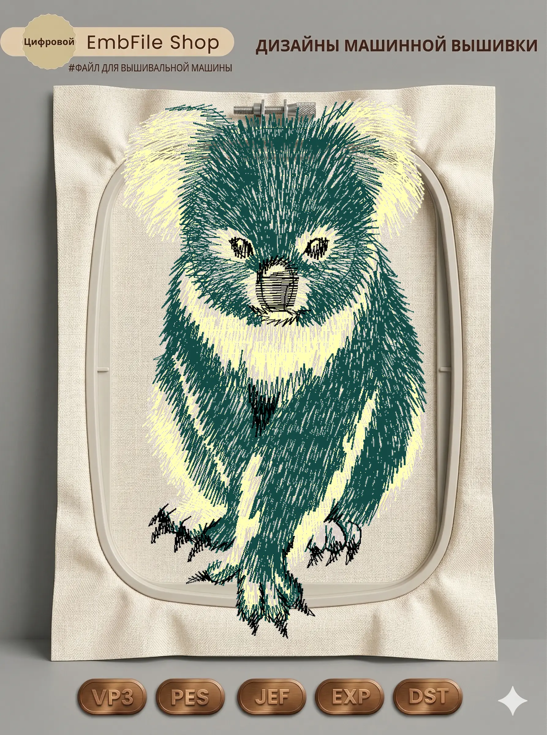 Это цифровой файл для вышивальной машины, а не физический товар (нашивка). Для работы с файлом вам необходимо иметь вышивальную машину и способ передачи файла на устройство (USB-флешка и т.д.).