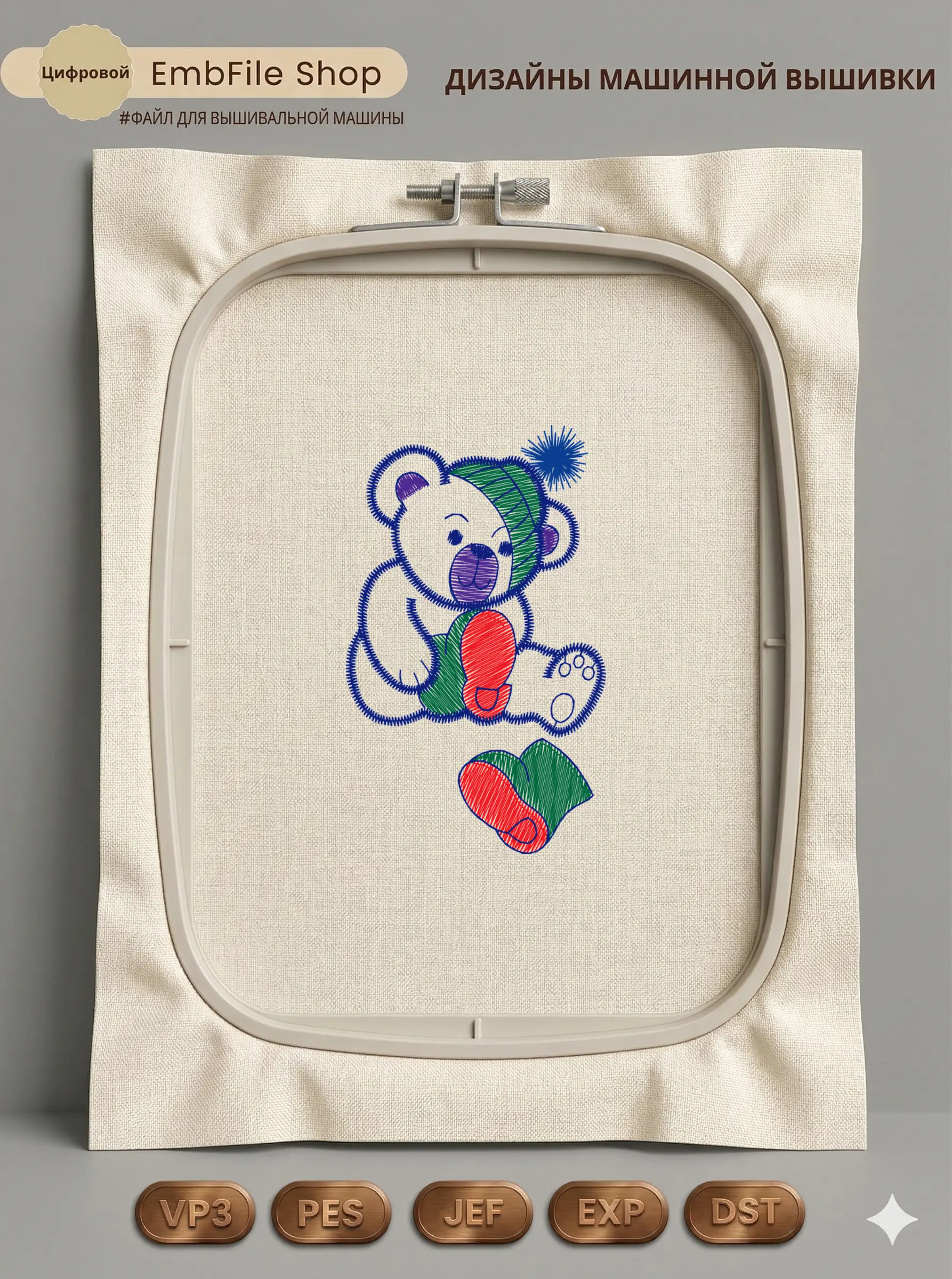 Дизайн протестирован на различных типах тканей, что гарантирует чистое и стабильное нанесение стежков.