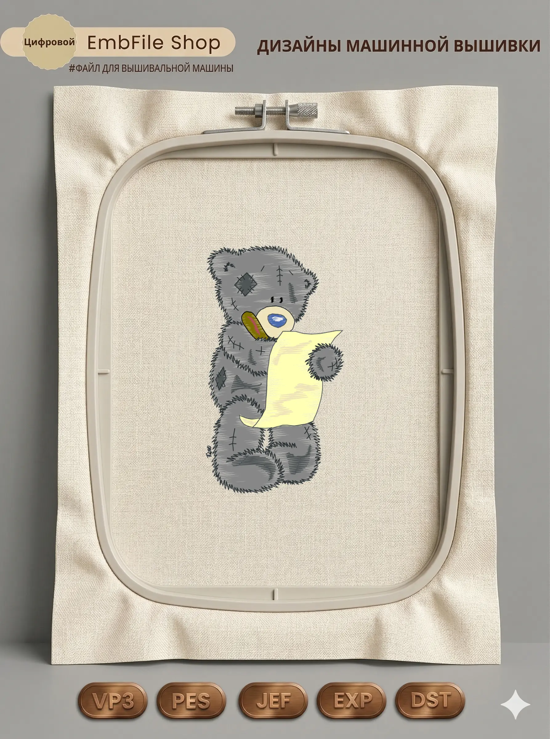 Это цифровой файл для вышивальной машины, а не физический товар (нашивка). Для работы с файлом вам необходимо иметь вышивальную машину и способ передачи файла на устройство (USB-флешка и т.д.).