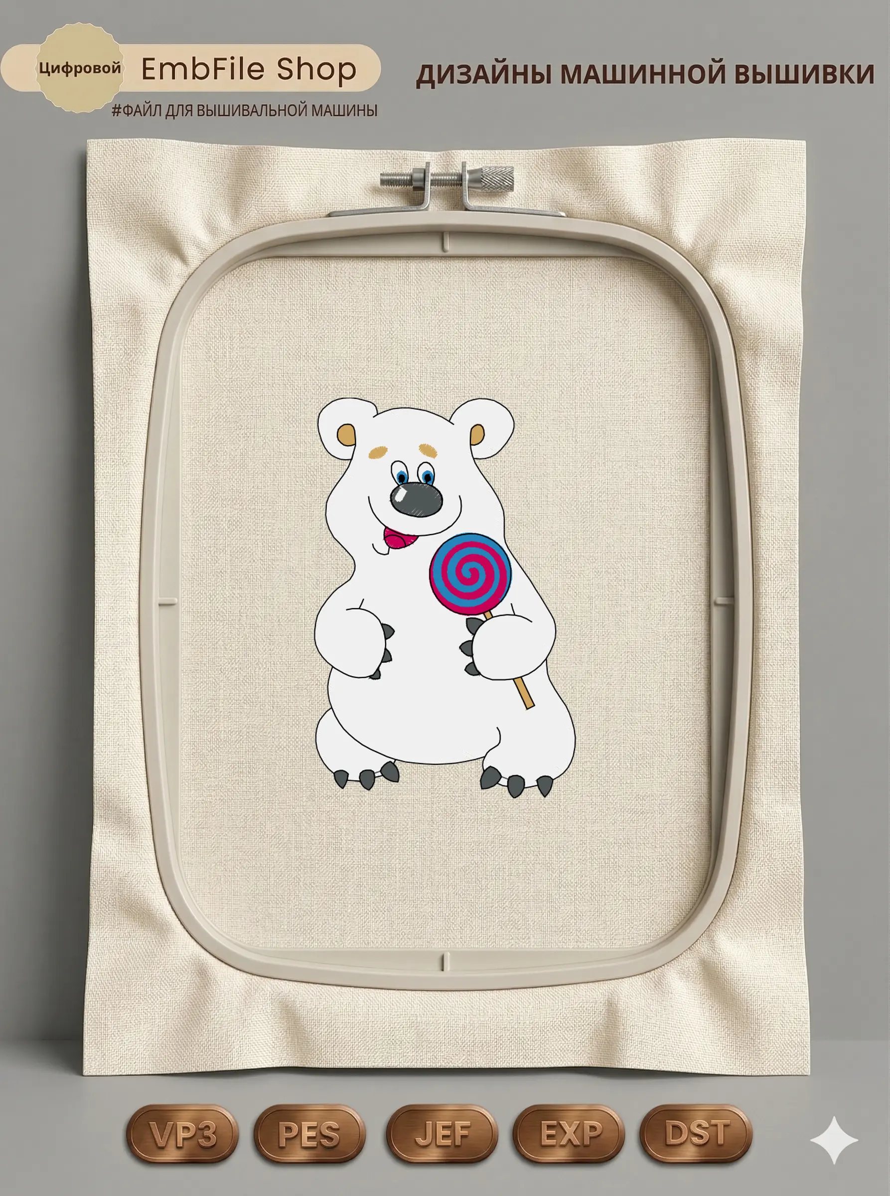 Это цифровой файл для вышивальной машины, а не физический товар (нашивка). Для работы с файлом вам необходимо иметь вышивальную машину и способ передачи файла на устройство (USB-флешка и т.д.).