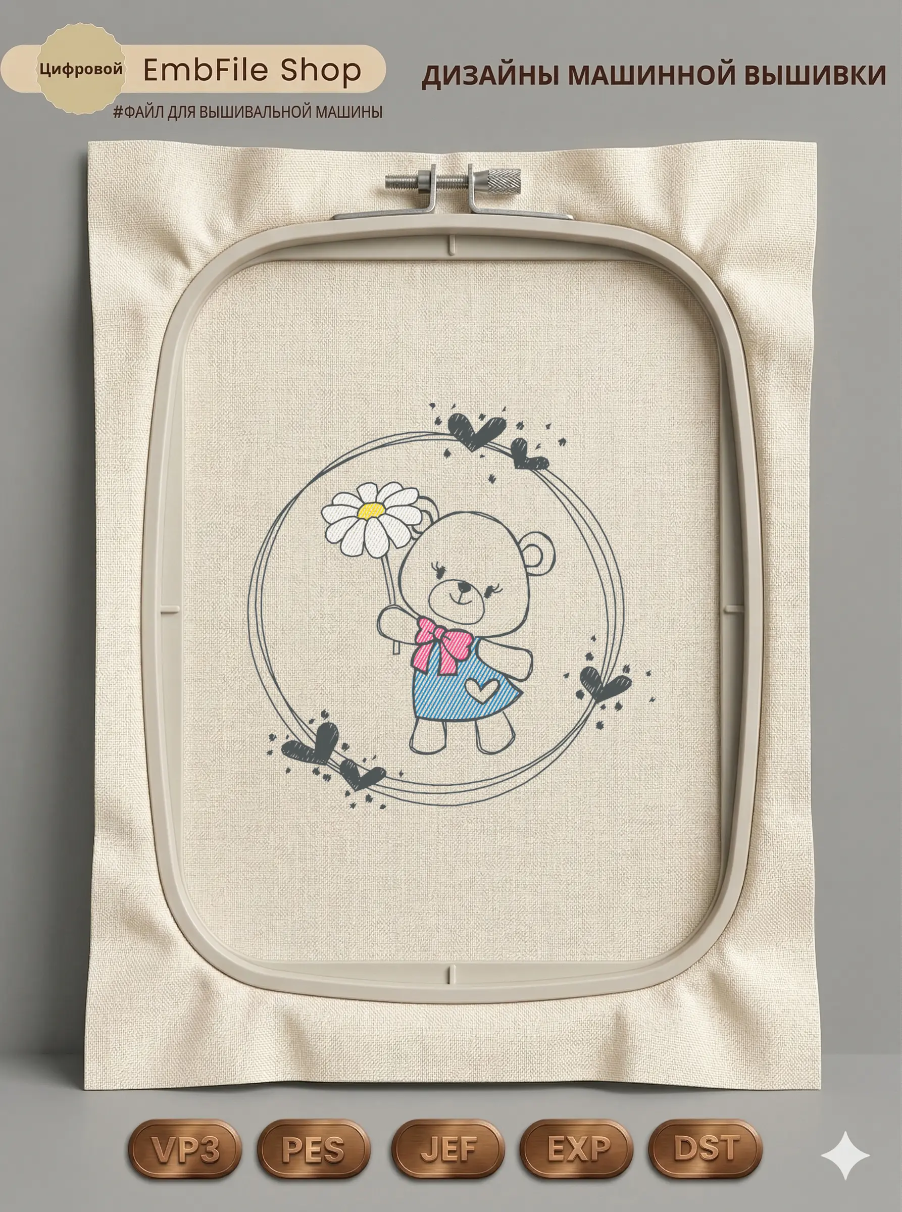 Дизайн протестирован на различных типах тканей, что гарантирует чистое и стабильное нанесение стежков.