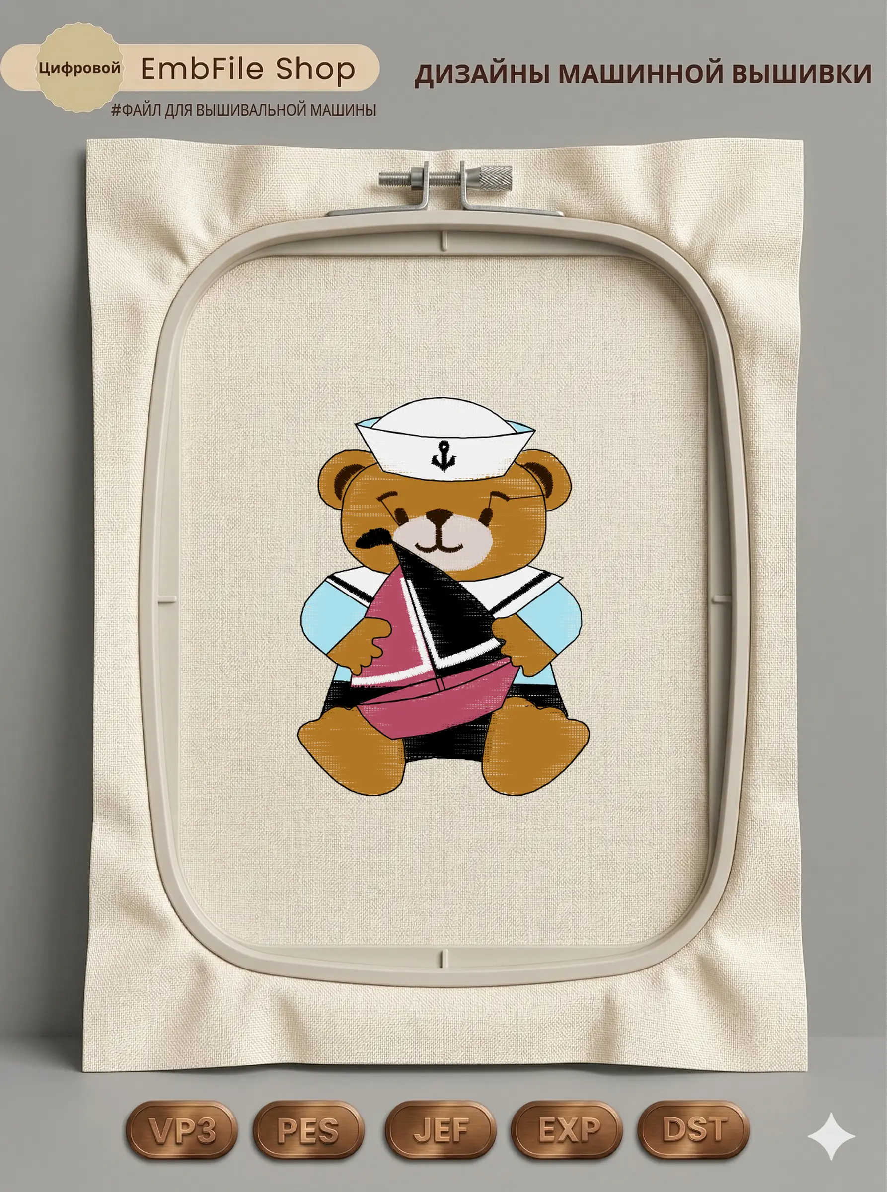 Это цифровой файл для вышивальной машины, а не физический товар (нашивка). Для работы с файлом вам необходимо иметь вышивальную машину и способ передачи файла на устройство (USB-флешка и т.д.).