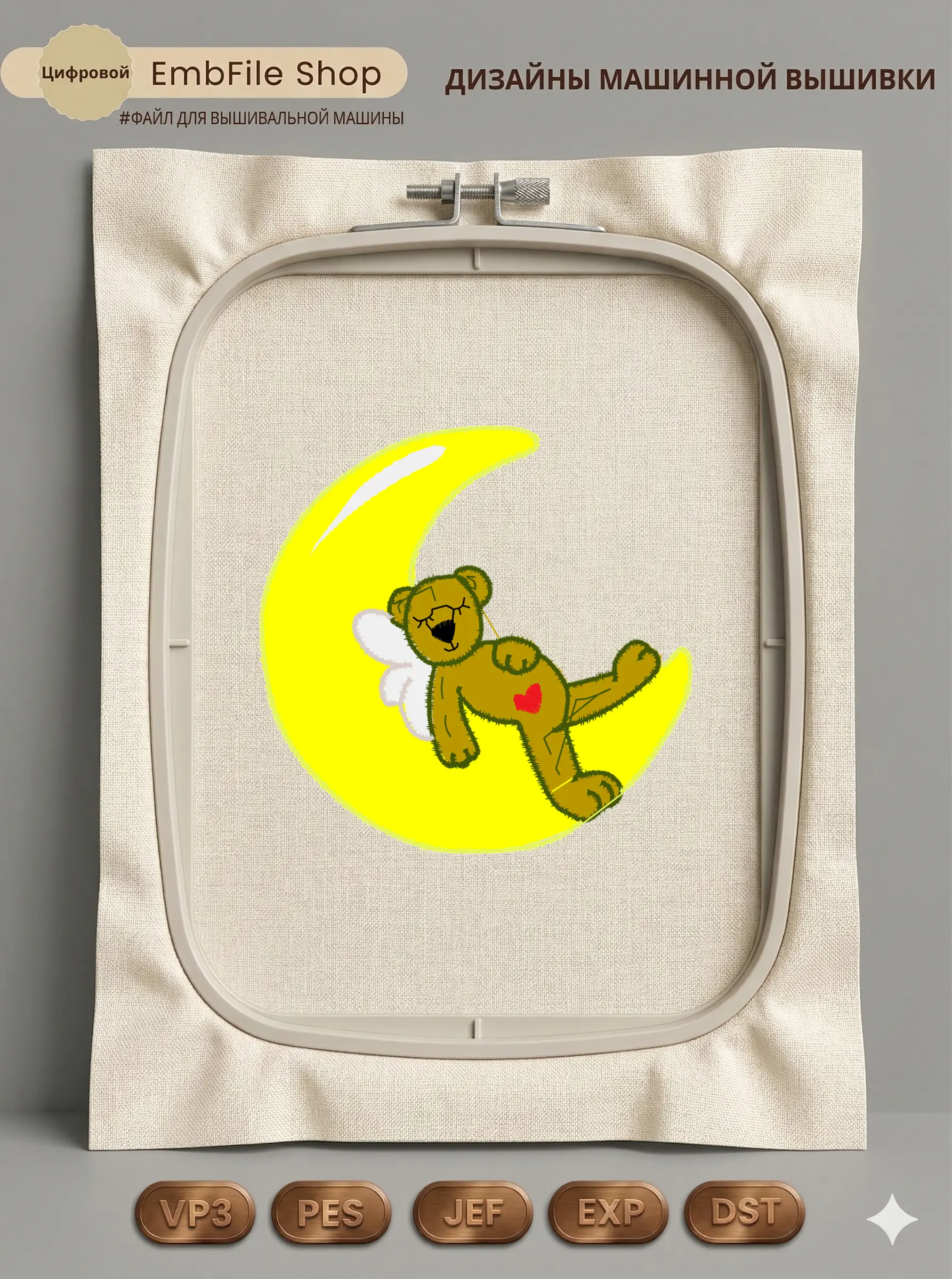 Это цифровой файл для вышивальной машины, а не физический товар (нашивка). Для работы с файлом вам необходимо иметь вышивальную машину и способ передачи файла на устройство (USB-флешка и т.д.).