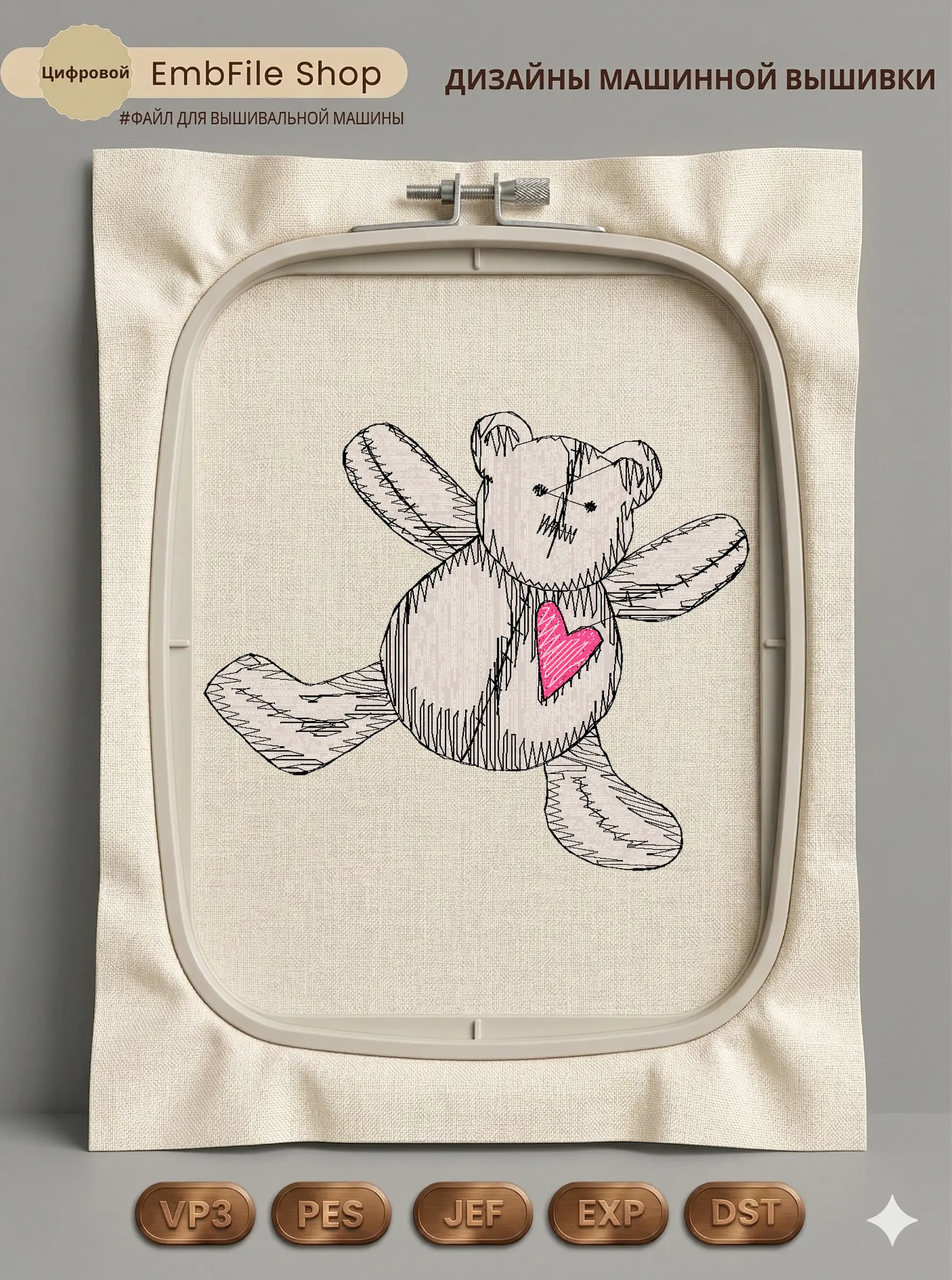 Это цифровой файл для вышивальной машины, а не физический товар (нашивка). Для работы с файлом вам необходимо иметь вышивальную машину и способ передачи файла на устройство (USB-флешка и т.д.).