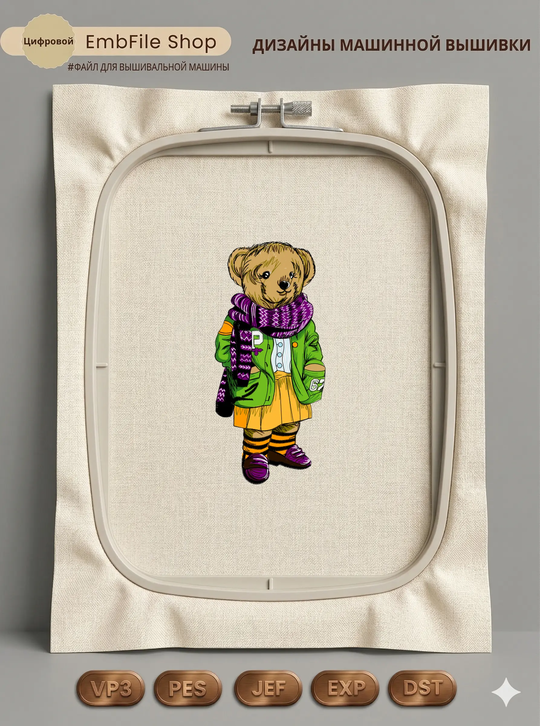 Это цифровой файл для вышивальной машины, а не физический товар (нашивка). Для работы с файлом вам необходимо иметь вышивальную машину и способ передачи файла на устройство (USB-флешка и т.д.).