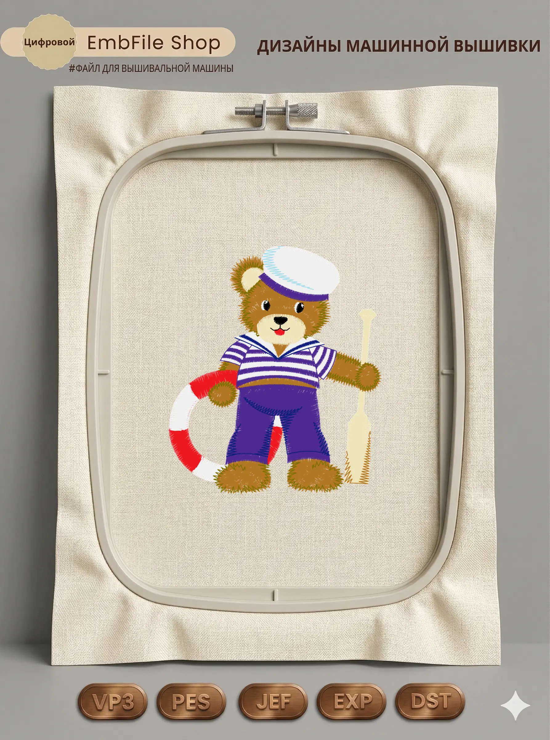 Это цифровой файл для вышивальной машины, а не физический товар (нашивка). Для работы с файлом вам необходимо иметь вышивальную машину и способ передачи файла на устройство (USB-флешка и т.д.).