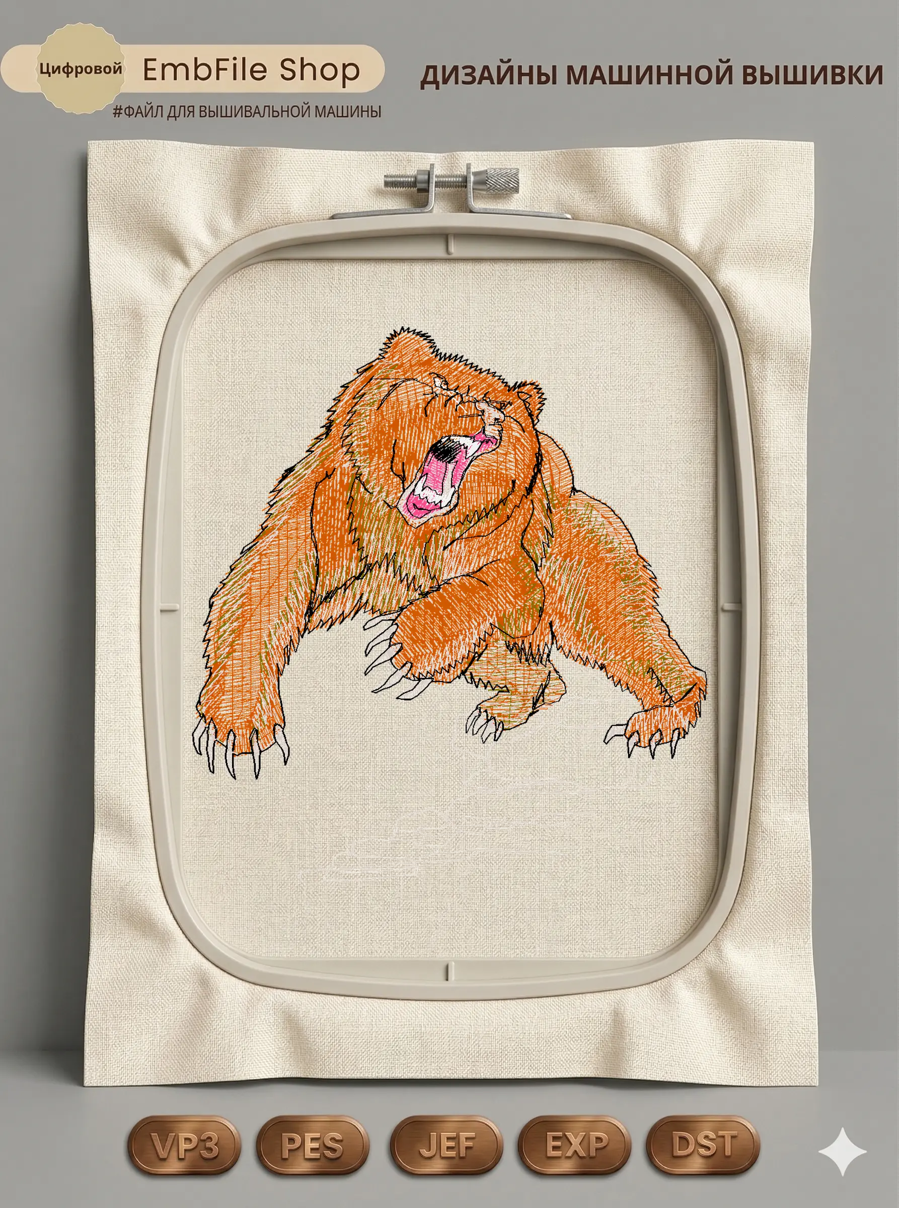 Это цифровой файл для вышивальной машины, а не физический товар (нашивка). Для работы с файлом вам необходимо иметь вышивальную машину и способ передачи файла на устройство (USB-флешка и т.д.).