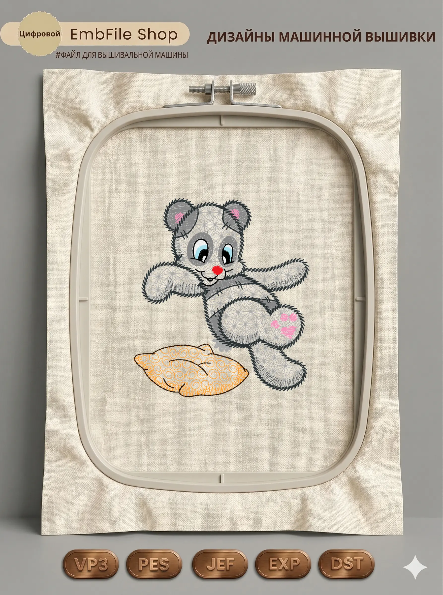 Дизайн протестирован на различных типах тканей, что гарантирует чистое и стабильное нанесение стежков.