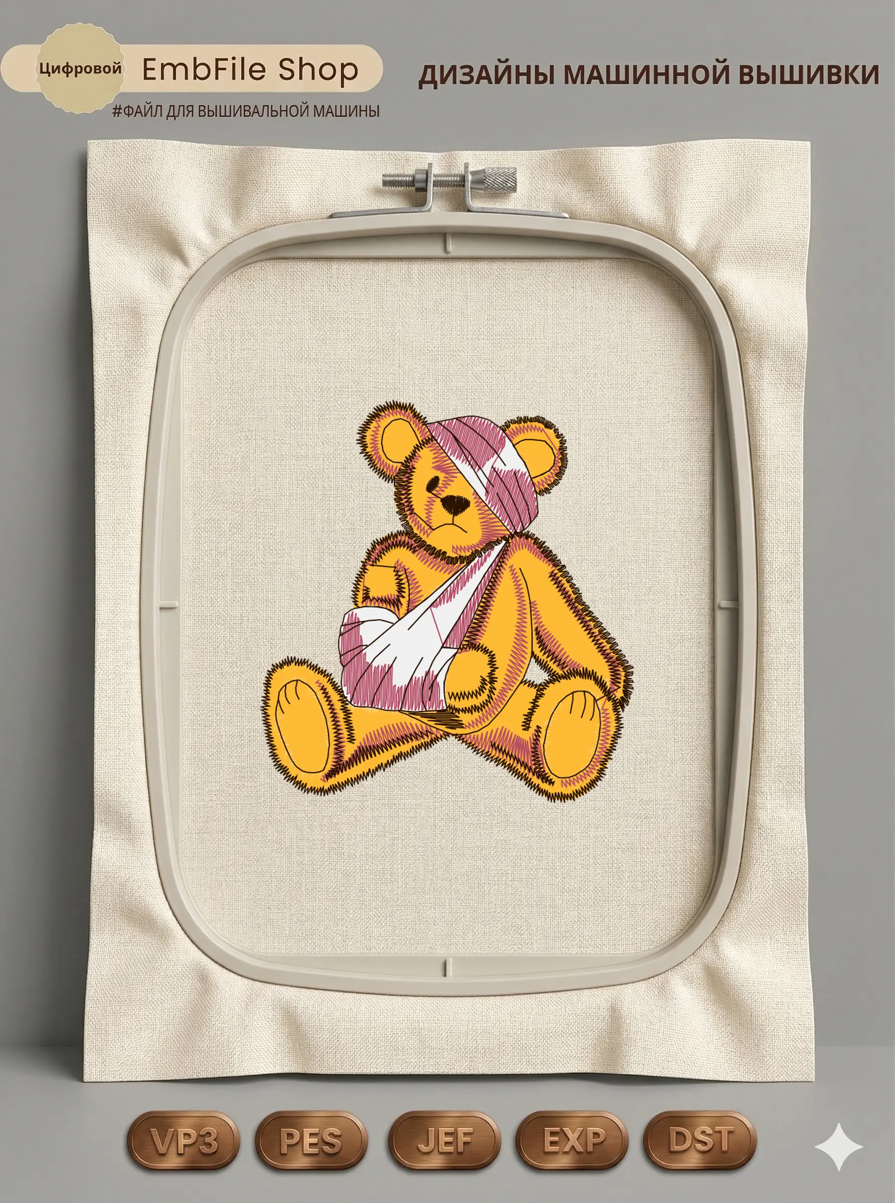 Это цифровой файл для вышивальной машины, а не физический товар (нашивка). Для работы с файлом вам необходимо иметь вышивальную машину и способ передачи файла на устройство (USB-флешка и т.д.).