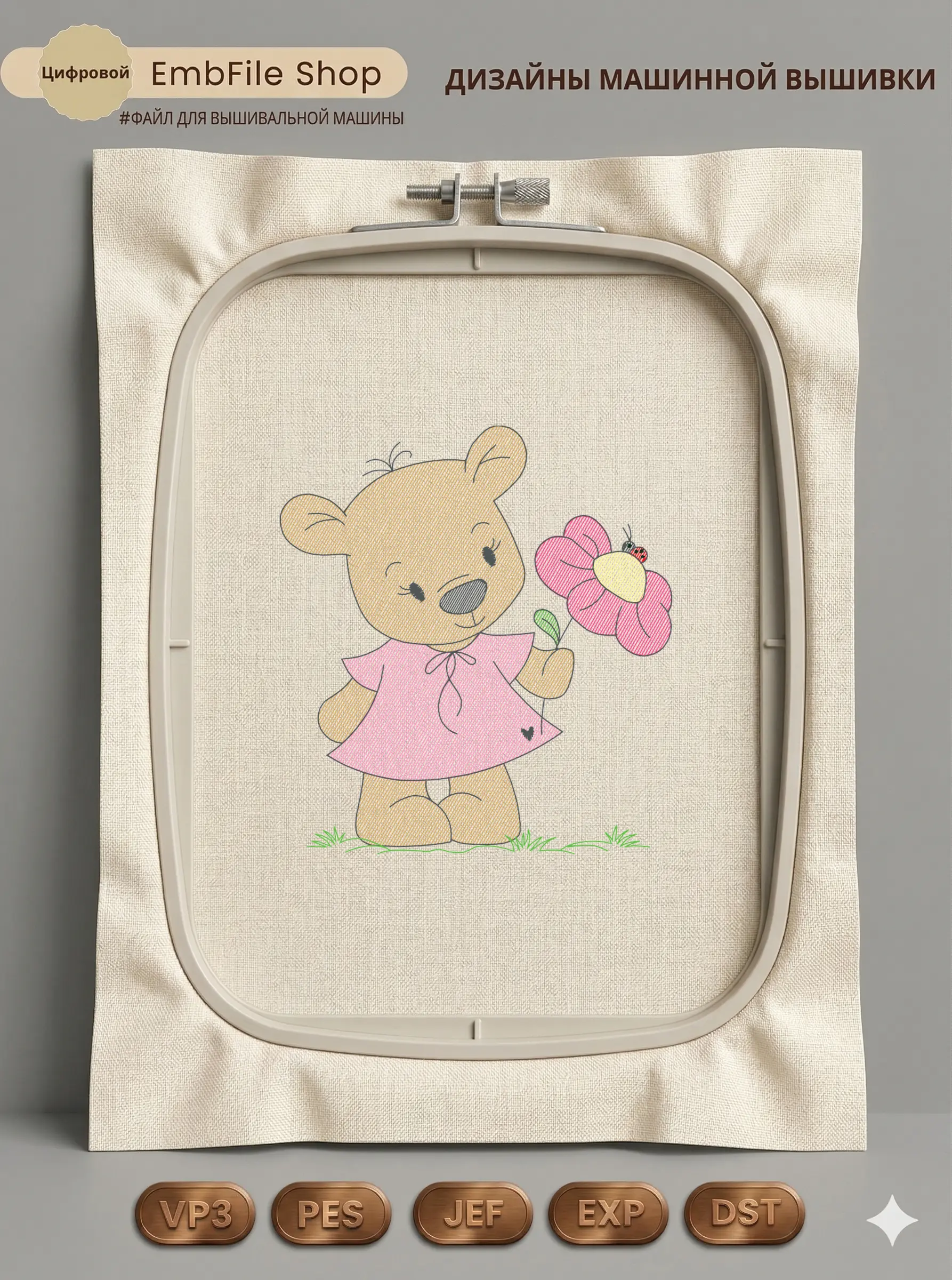 Это цифровой файл для вышивальной машины, а не физический товар (нашивка). Для работы с файлом вам необходимо иметь вышивальную машину и способ передачи файла на устройство (USB-флешка и т.д.).
