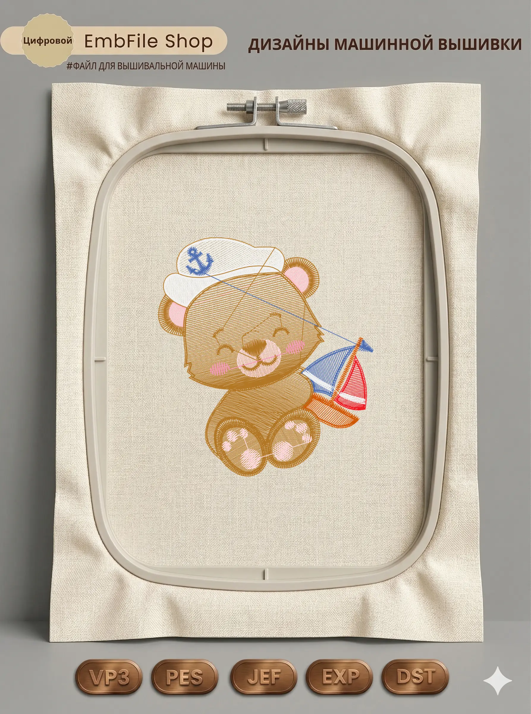 Это цифровой файл для вышивальной машины, а не физический товар (нашивка). Для работы с файлом вам необходимо иметь вышивальную машину и способ передачи файла на устройство (USB-флешка и т.д.).