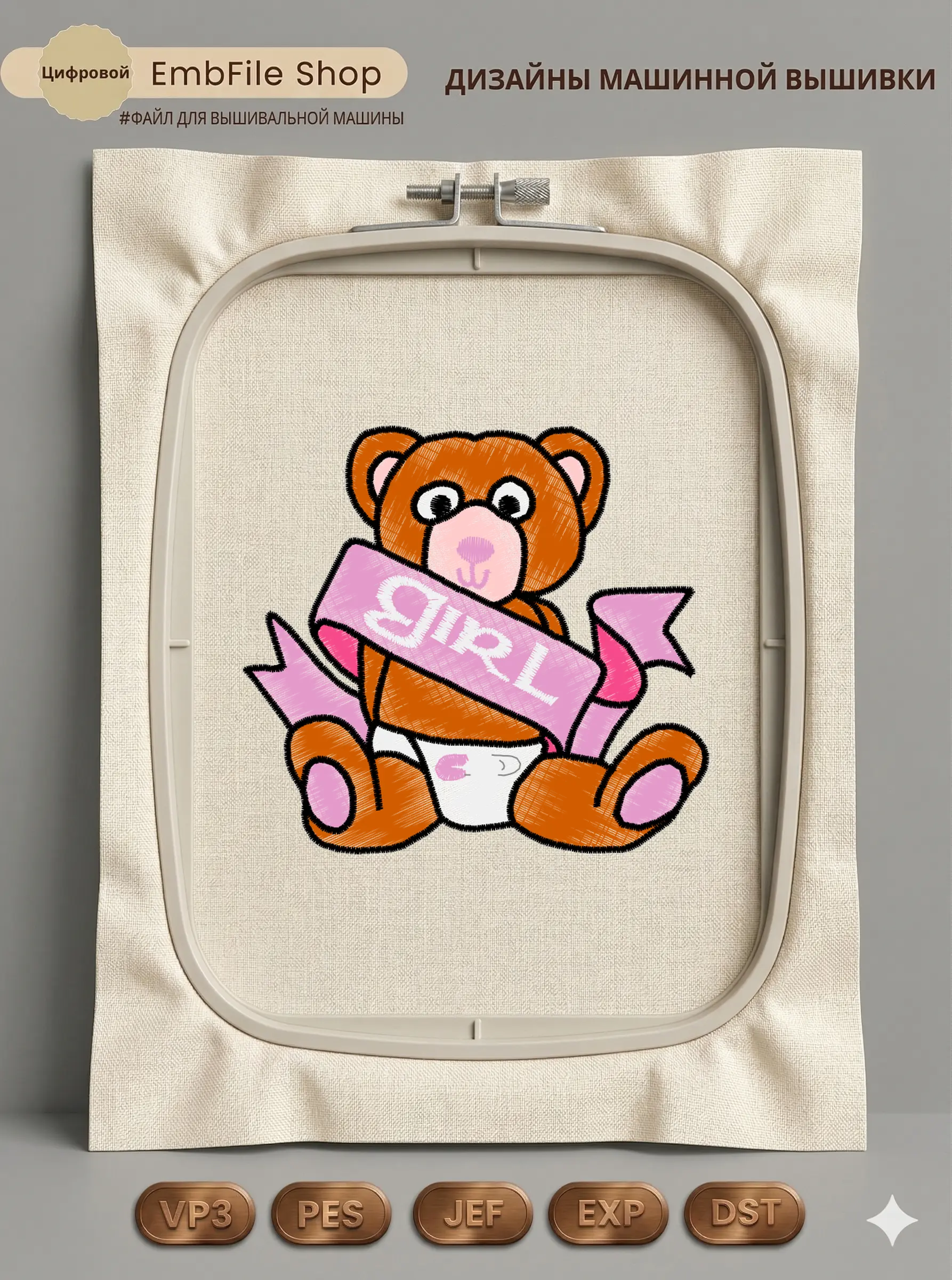 Это цифровой файл для вышивальной машины, а не физический товар (нашивка). Для работы с файлом вам необходимо иметь вышивальную машину и способ передачи файла на устройство (USB-флешка и т.д.).