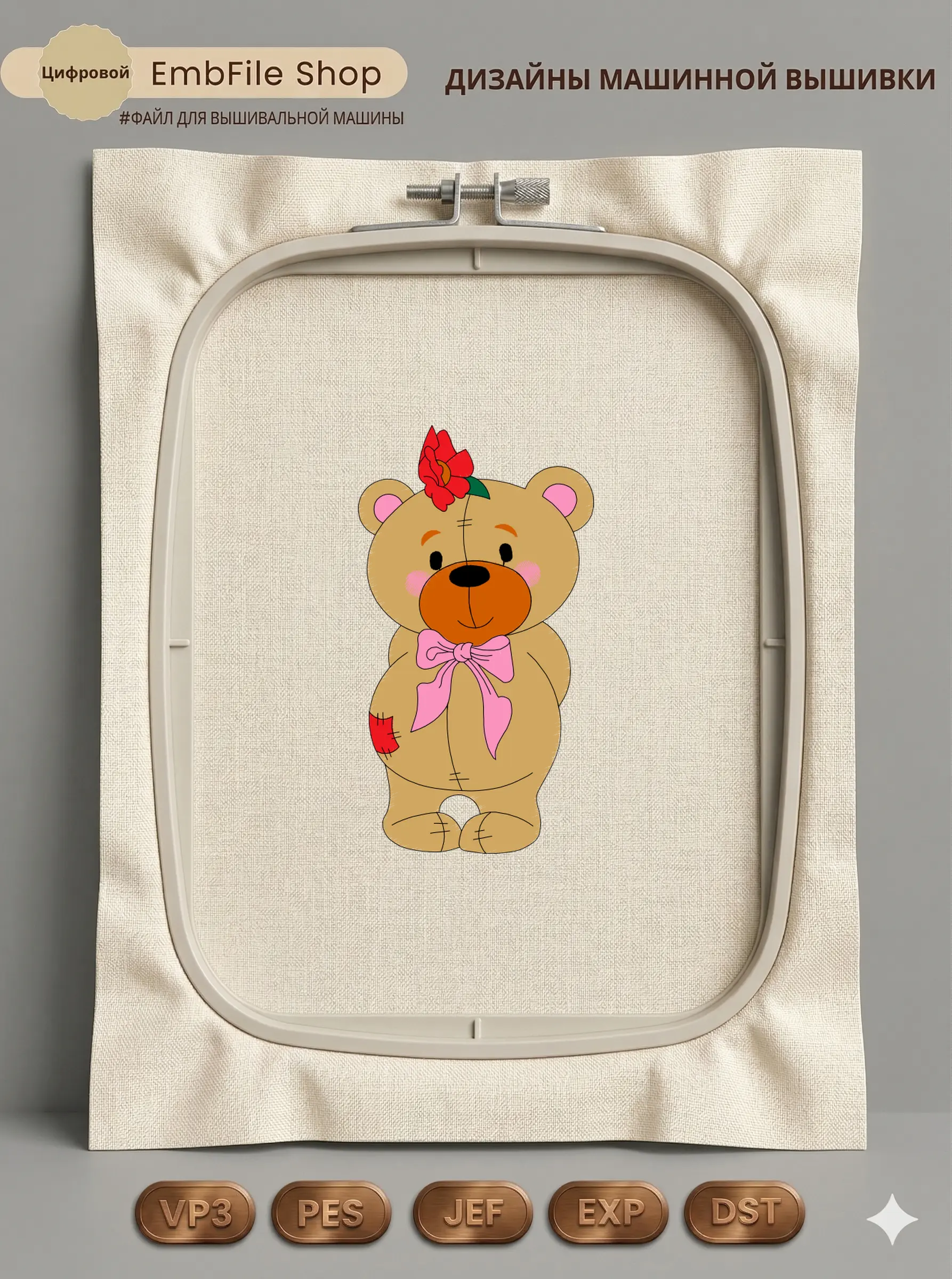 Это цифровой файл для вышивальной машины, а не физический товар (нашивка). Для работы с файлом вам необходимо иметь вышивальную машину и способ передачи файла на устройство (USB-флешка и т.д.).
