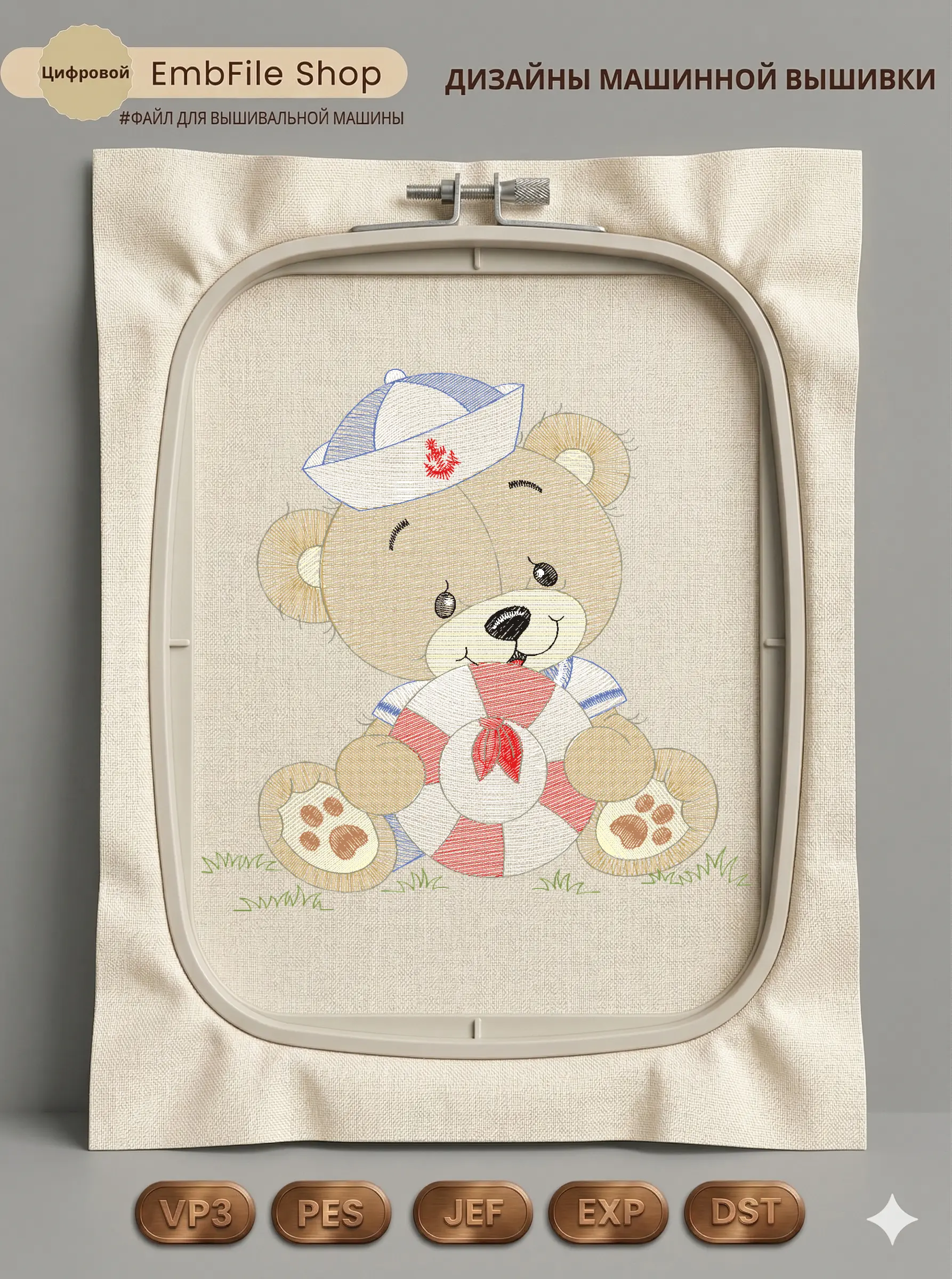 Это цифровой файл для вышивальной машины, а не физический товар (нашивка). Для работы с файлом вам необходимо иметь вышивальную машину и способ передачи файла на устройство (USB-флешка и т.д.).